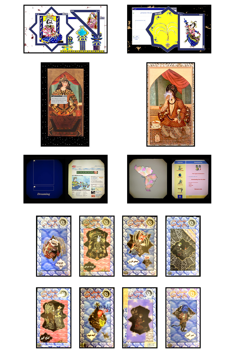 Persian miniature paintings scrubbed clean of people and queered with turn-of-the-millennium gifs