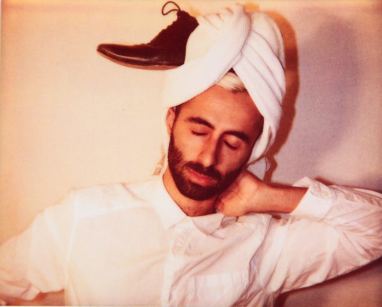 In response to a hook-up that led to being called a towelhead, I began a series of photos of wrapping/balancing everyday objects on my head for a way to play with the bruise (2010)